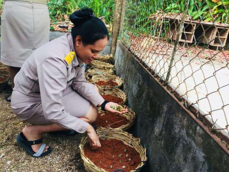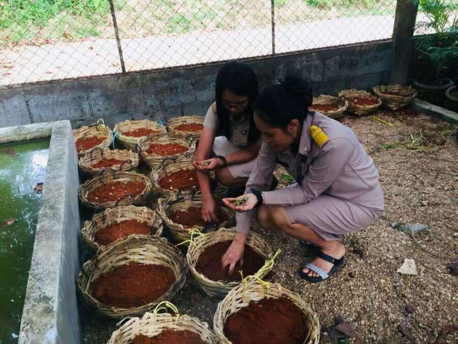 ครูสิทธิชัย สิมสกุล ครูอังคณา อินทร์พรหม และครูวิไลพร ทองได้หนู พร้อมกับนักเรียนโรงเรียนคุระบุรีชัยพัฒนาพิทยาคม ร่วมด้วยช่วยกันเพาะปลูกเมล็ดพลับพลึงธารเพื่ออนุรักษ์ไว้ให้ลูกหลานได้ชื่นชมไปได้อีกนานๆ S:0