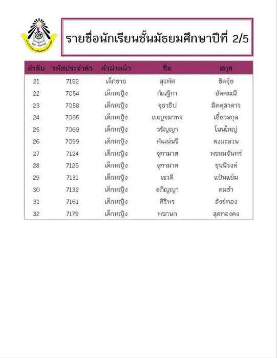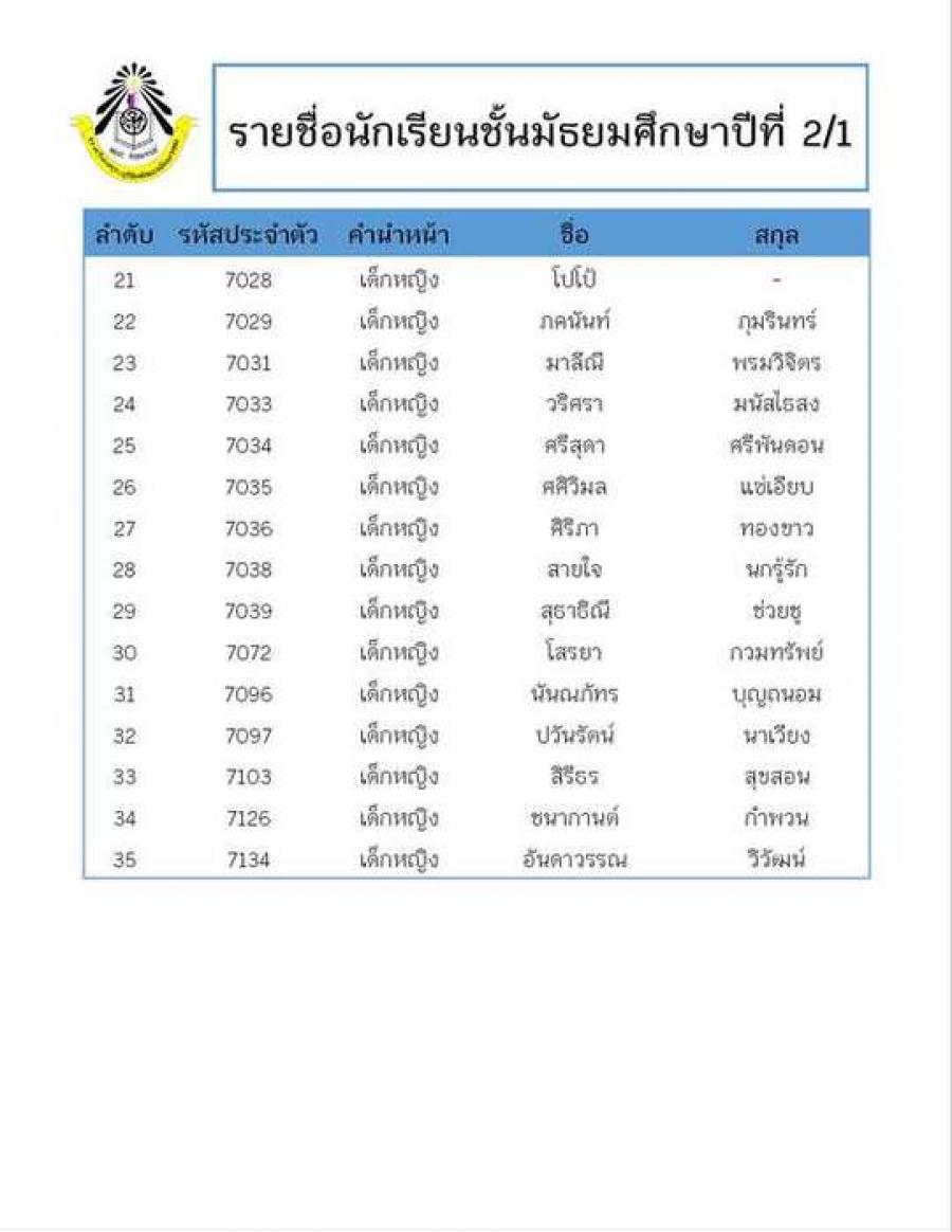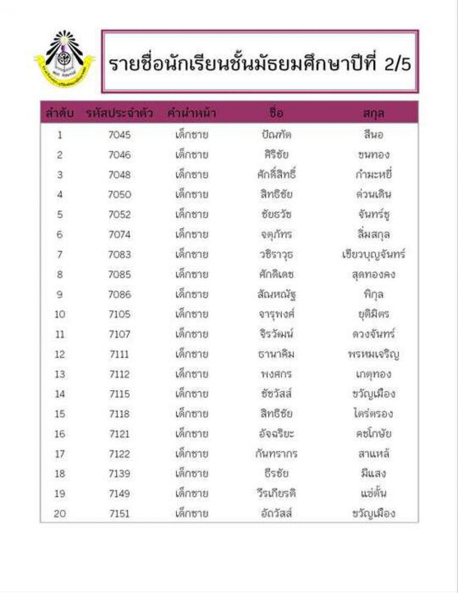 รายชื่อนักเรียนชั้นมัธยมศึกษาปีที่ 2 โรงเรียนคุระบุรีชัยพัฒนาพิมยาคม ปีการศึกษา 2563 S:0